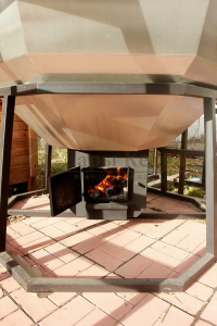 Банный чан на подставке изготовлен из пищевой стали. Представляет собой большую ёмкость в виде чаши, при нагревании которой можно париться на свежем воздухе. Чан установлен на устойчивую металлическую подставку и оборудован кедровым бортом, скамейками, подспинниками, трапом для ног и приставной лестницей. Нагревание банного чана происходит от обычного костра. Если оборудовать данную модель печью, то банные процедуры можно принимать даже зимой.