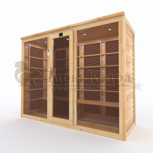 Это специально оборудованная кедровая кабина для прогрева тела человека сухим теплом. Воздух в таких парных не нагревается. Инфракрасные лучи воздействуют на тело, равномерно прогревая мышцы, суставы и органы. Карбоновые излучатели, встроенные в стены кабины, обладают мягким прогревом, что полностью исключает возможность ожога. Работает кабина за счет электричества. Инфракрасная сауна с карбоновыми излучателями подойдет как для домашнего использования, так и для коммерции.