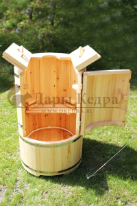 Овальная фитобочка из кедра - это мини парная, которую можно использовать не только в спа-салонах, но и дома. Овальная модель более просторна и удобна в использовании. Толщина стенок составляет 40-45 мм, что позволяет увеличить срок службы изделия. Верхний скос делает положение головы более комфортным и улучшает обзор. Она оборудована откидными створками, дверцей и отверстием для головы. Во время парения человек сидит внутри кедровой бочки, а голова находится снаружи. Благодаря этому исключается возможность перегрева. Подлокотники из кедра, встроенные ручки на створках и двери делают эксплуатацию более удобной.