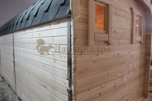 Козырек из кедра - это защита входа в баню и всего фасада от лишней влаги, что, конечно, лучшим образом скажется на красоте и долговечности дерева.