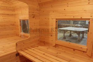 Размер окна варьируется от 120 см до 180 см в длину, ширина согласовывается индивидуально. Добавит света парному отделению, а также визуально расширит пространство.