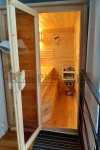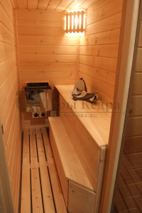 Это специально оборудованная готовая деревянная кабина для сухого и влажного парения. Электропечь нагревает пространство внутри и позволяет сбрызгивать камни водой, слегка увлажняя воздух. Такая процедура позволяет избежать перегрева. Сауна обшита снаружи и внутри кедровой вагонкой и имеет теплоизоляционный слой. Финская сауна с электропечью подойдет, как для домашнего использования, так и для коммерции. Доставляется в разборном виде щитами, собирается по инструкции с помощью шуруповёрта.